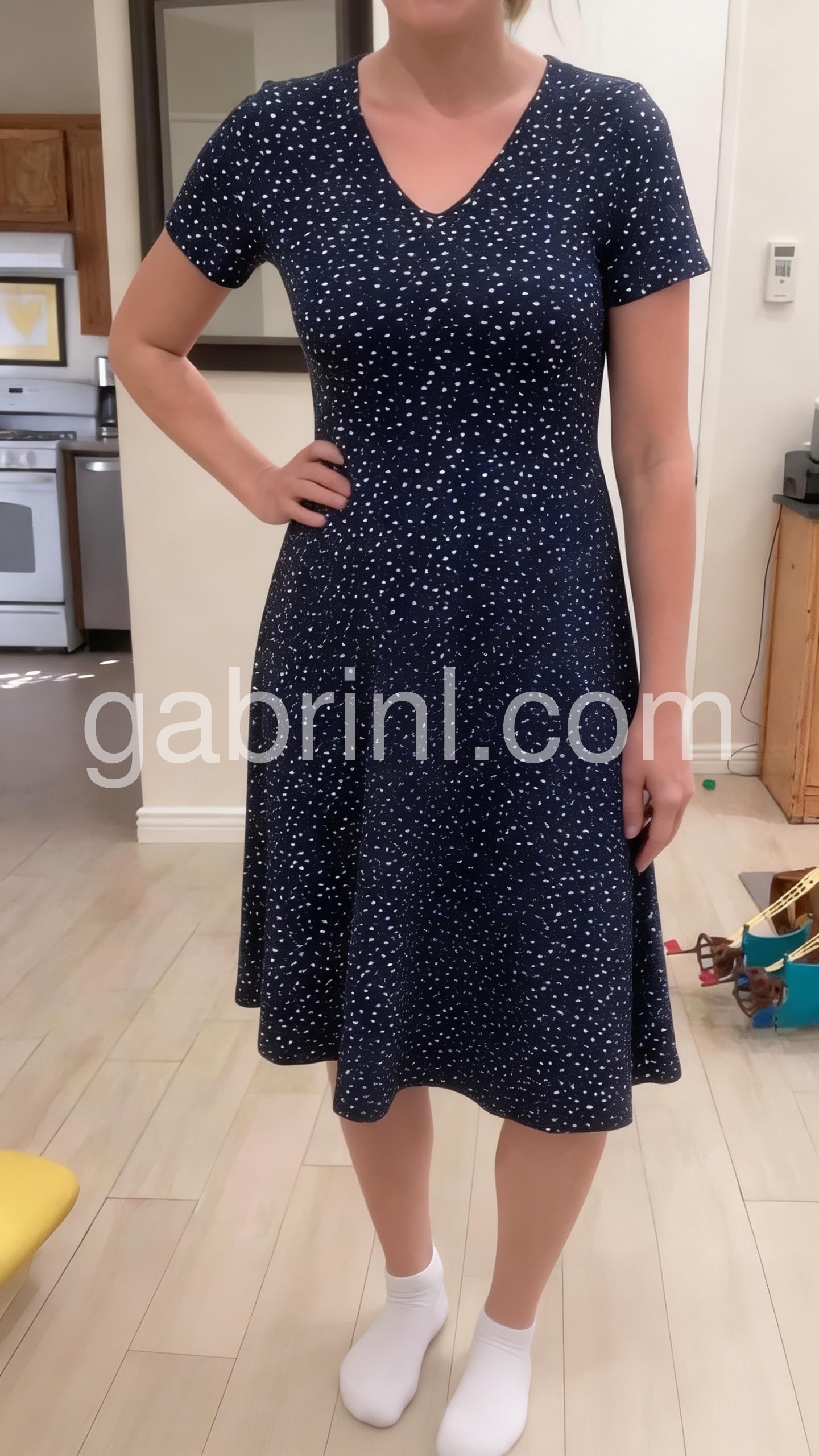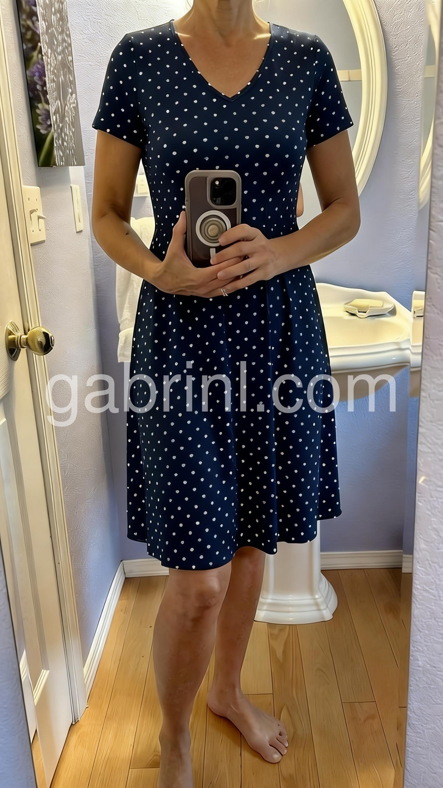 Effortless elegance meets playful charm in this navy midi dress—the kind of piece that makes you feel polished without trying. The flattering V-neckline draws the eye upward while delicate flutter sleeves frame your shoulders with understated grace. Crisp white polka dots dance across the navy canvas, creating visual interest that photographs beautifully.