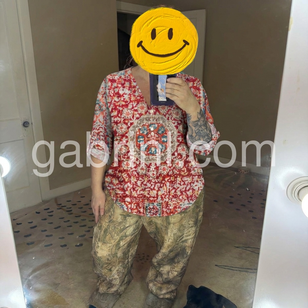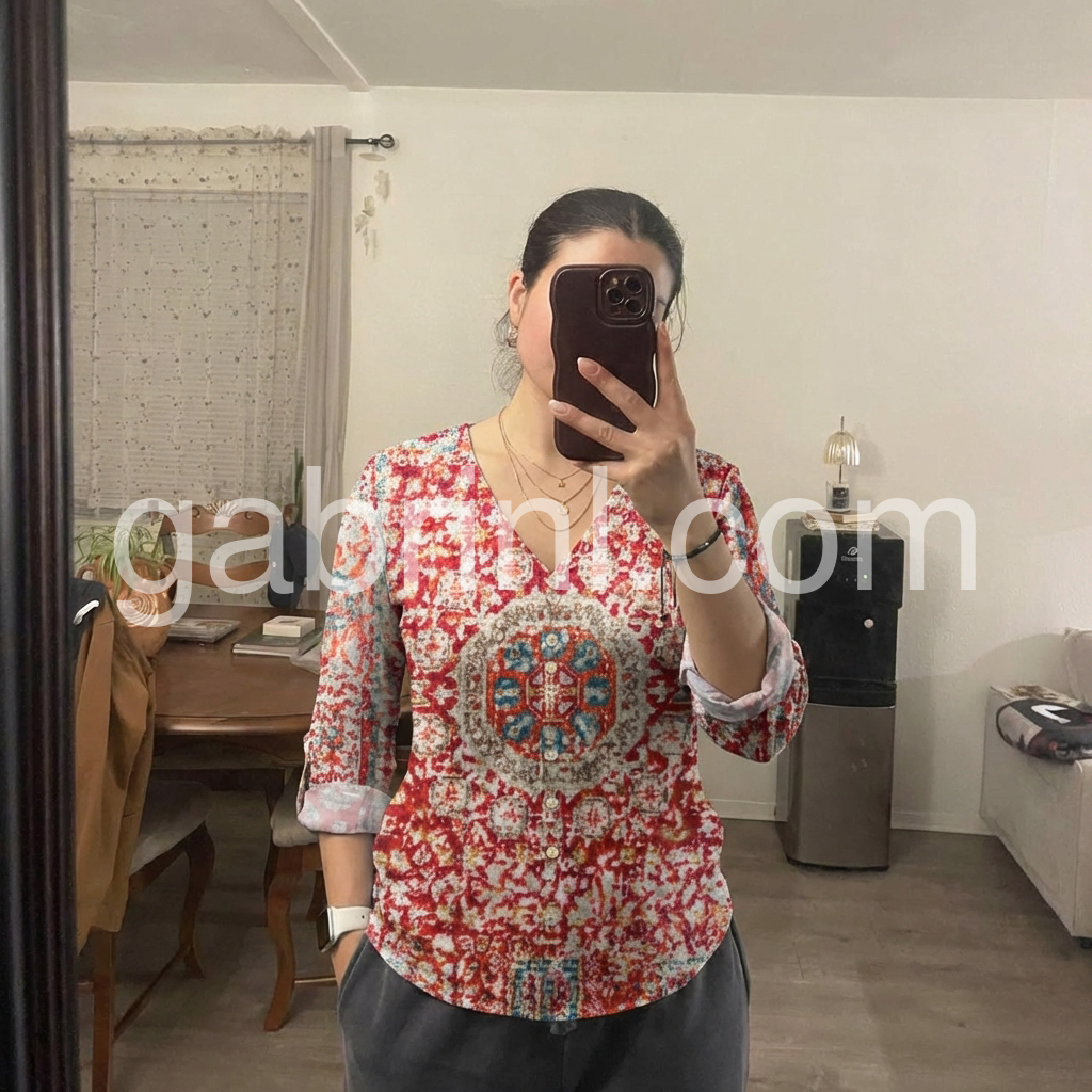This blouse is a wearable celebration of bohemian artistry. The vibrant red base, printed with intricate ethnic-inspired geometric motifs, makes a bold statement.