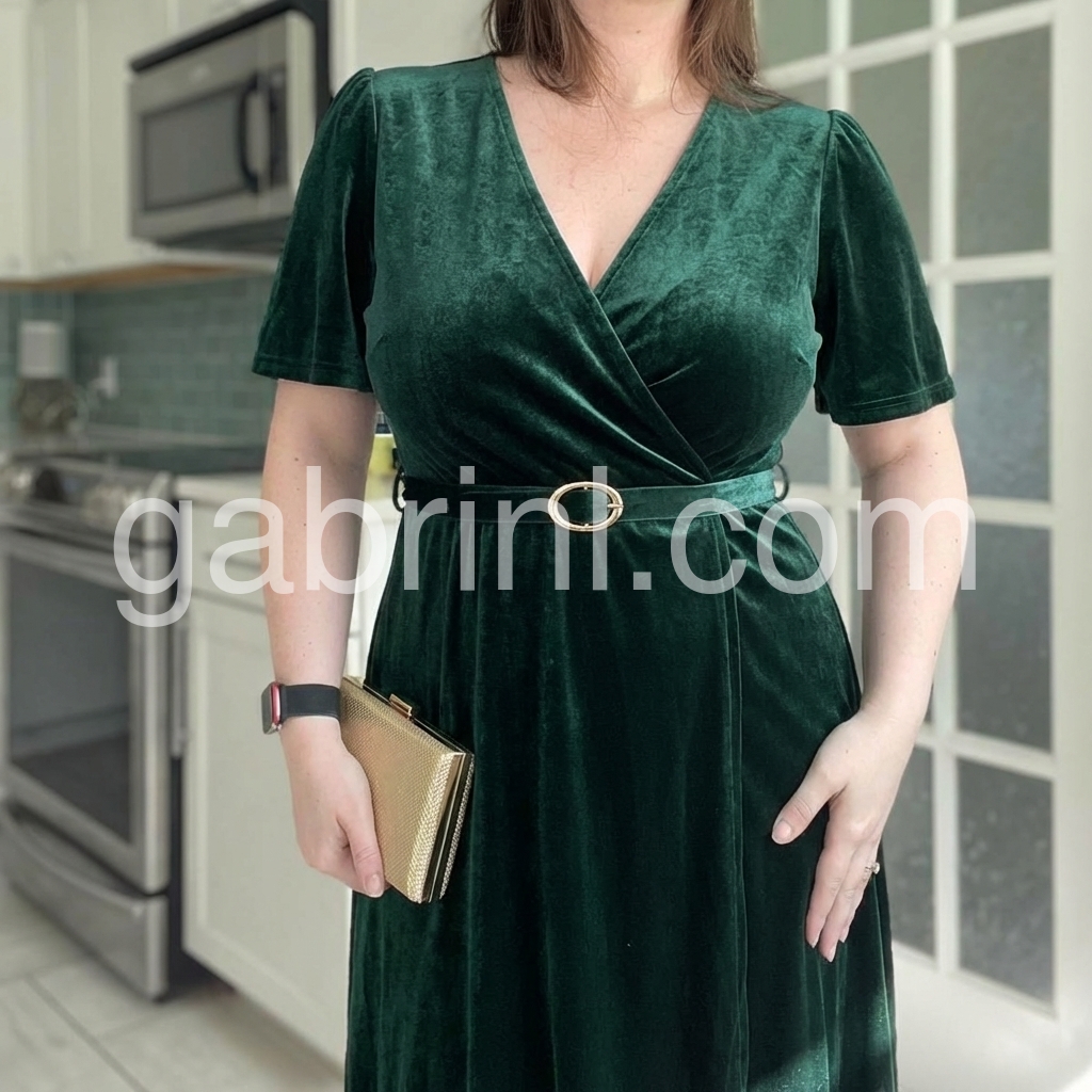 Emerald Velvet Wrap Long Sleeve Maxi Dress
