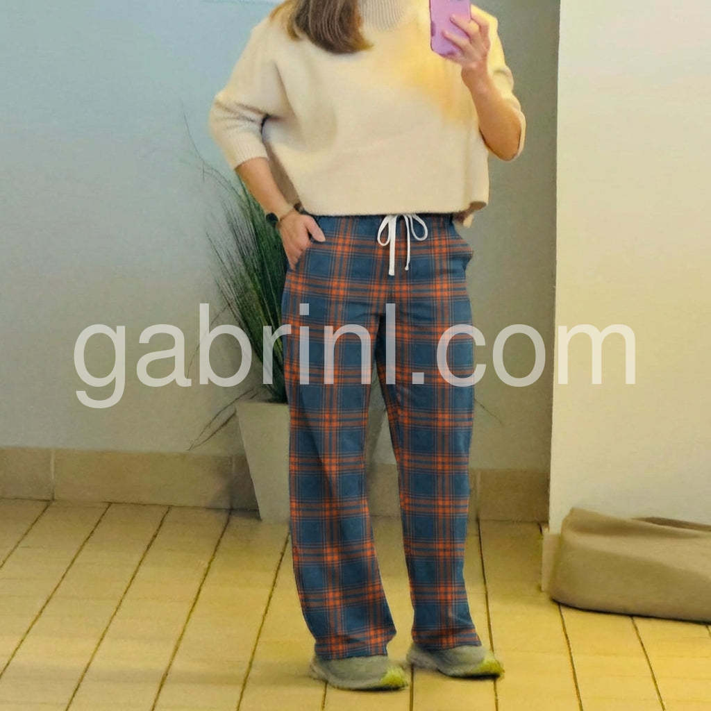 Casual Blue Check Side Pocket Pants