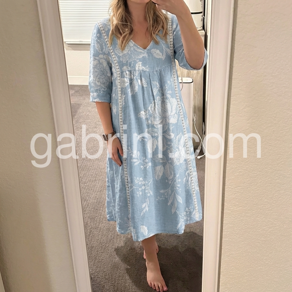 This casual midi dress features a flattering V-neck and loose A-line silhouette, offering all-day comfort and a relaxed fit. Crafted from breathable, linen-like fabric, it’s perfect for warm weather and everyday wear.