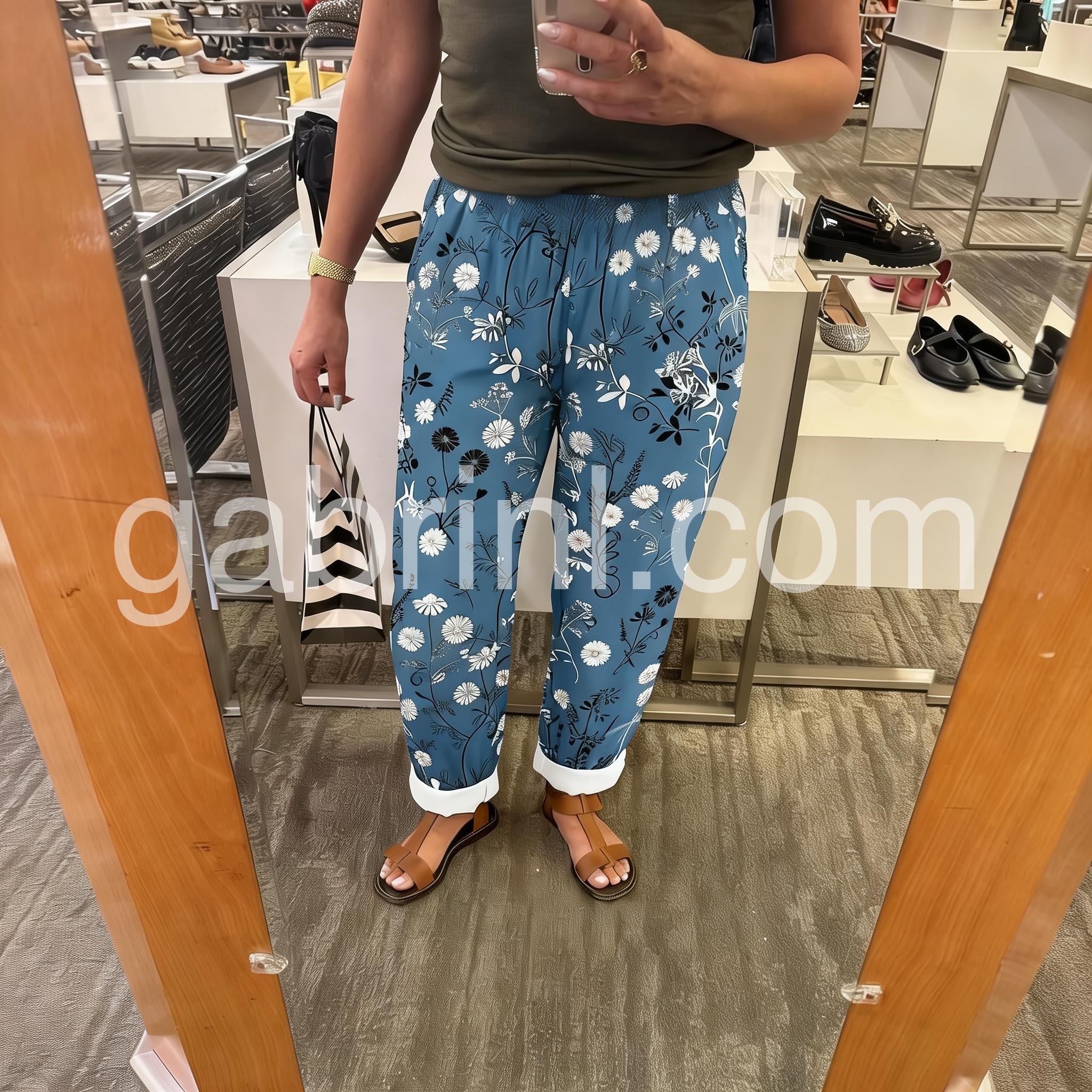 These relaxed-fit pants feature a vibrant blue base with white and black floral patterns. Elastic waistband and cuffed hems offer a cozy, tailored look. Perfect for casual outings or beach days. Lightweight fabric ensures all-day comfort. Effortlessly chic with a bohemian touch.
