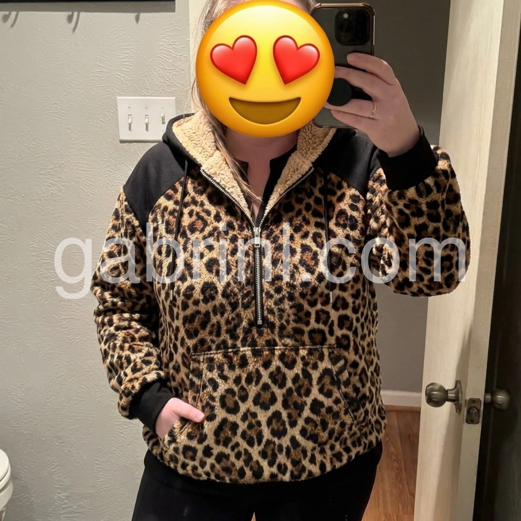 Make a statement with this striking leopard print sweatshirt, designed for those who embrace bold fashion choices. The soft fuzzy lining provides exceptional comfort and warmth, perfect for layering or wearing solo during cooler months. The classic leopard pattern adds timeless appeal to your casual wardrobe, while the relaxed fit ensures all-day wearability. Whether you're running errands or meeting friends, this versatile piece transitions effortlessly from day to night. Durable construction means it'll remain a go-to favorite season after season.