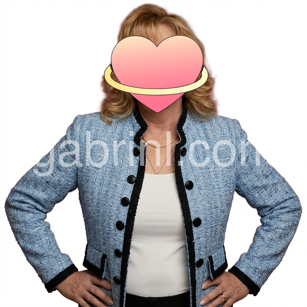This blue tweed blazer features a refined black trim and a classic double-button closure, offering a sharp, tailored fit. Its textured fabric adds depth and sophistication, making it ideal for both professional settings and stylish casual wear. Designed to elevate your wardrobe with timeless elegance and structured silhouette.