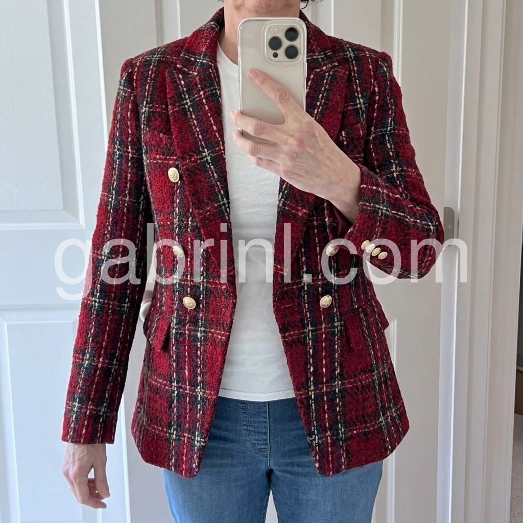 Upgrade your wardrobe with this Red Long Sleeve Check Blazer. This stylish blazer features a bold red color and a classic check print, perfect for making a statement. Crafted with long sleeves, it offers comfort and style all day long. Elevate your look with this versatile piece.
