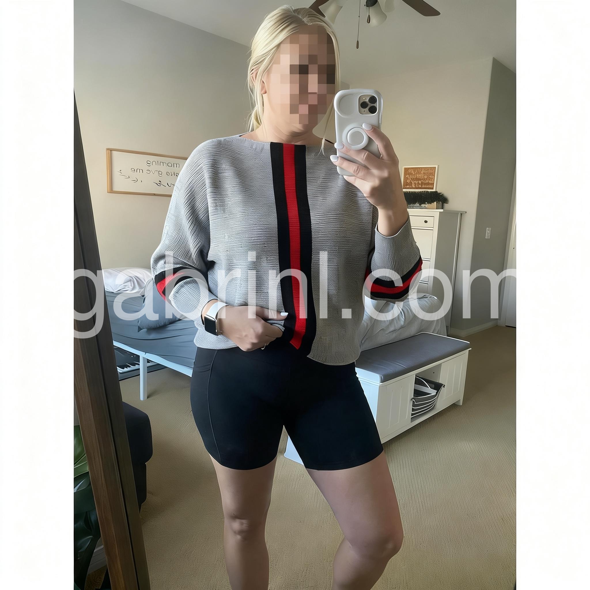 Bold designer-inspired red and black stripes down the front and on the long Dolman sleeves give this classic gray sweater an elevated look. Wear this versatile and comfortable little sweater to just about anywhere for a refined, laid-back style. Pair with black leggings, pants, and boots. Machine wash normal with light colors or hand wash. Bleach if needed. May be hung up to dry or lay flat. Tumble dry with low heat. Light ironing if needed.