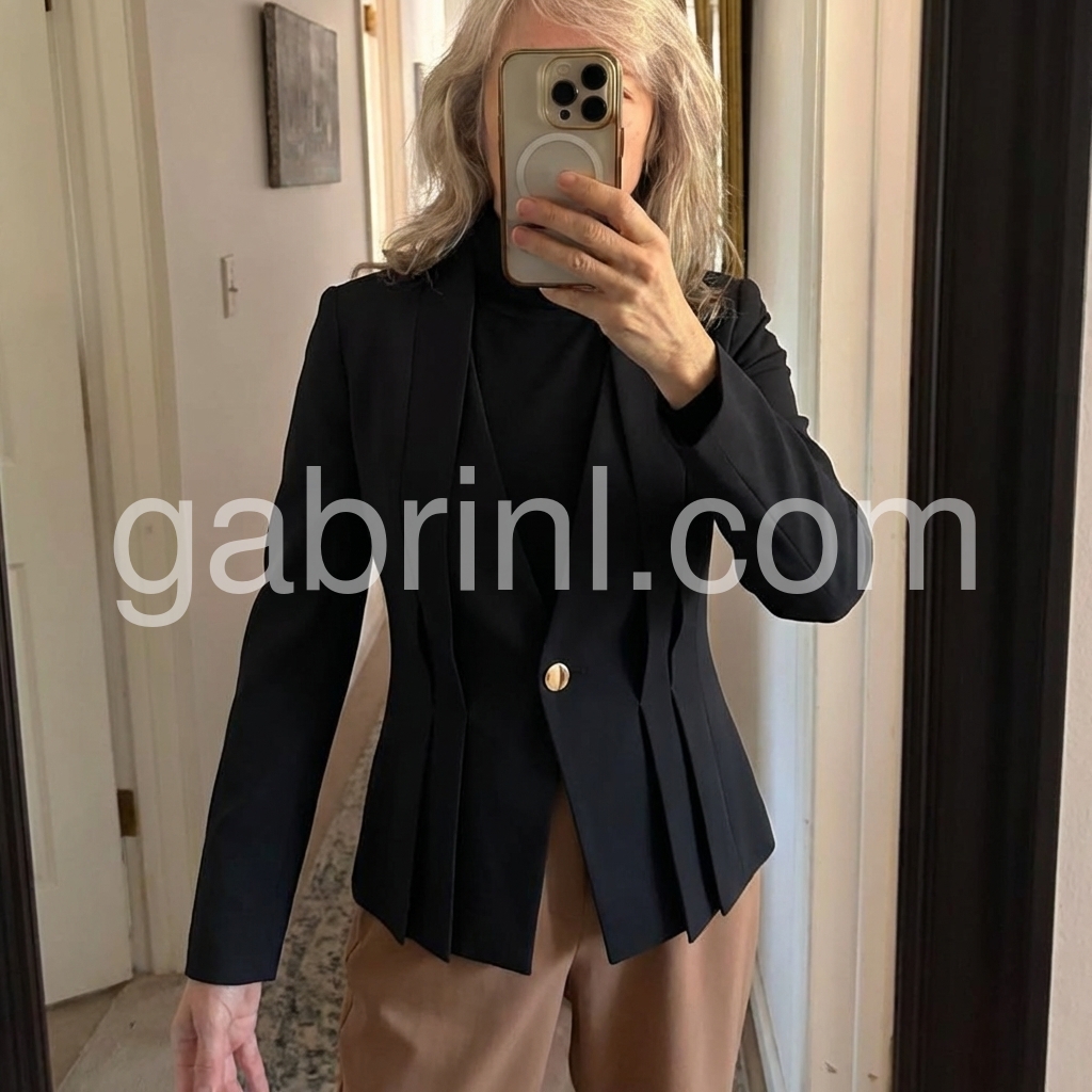 This black plain long sleeve lapel blazer features a timeless design that exudes elegance and professionalism. Made from high-quality materials, it offers a comfortable fit and a sleek silhouette. Perfect for both formal and casual occasions, it adds a touch of sophistication to any outfit. Enhance your wardrobe with this versatile and stylish blazer.