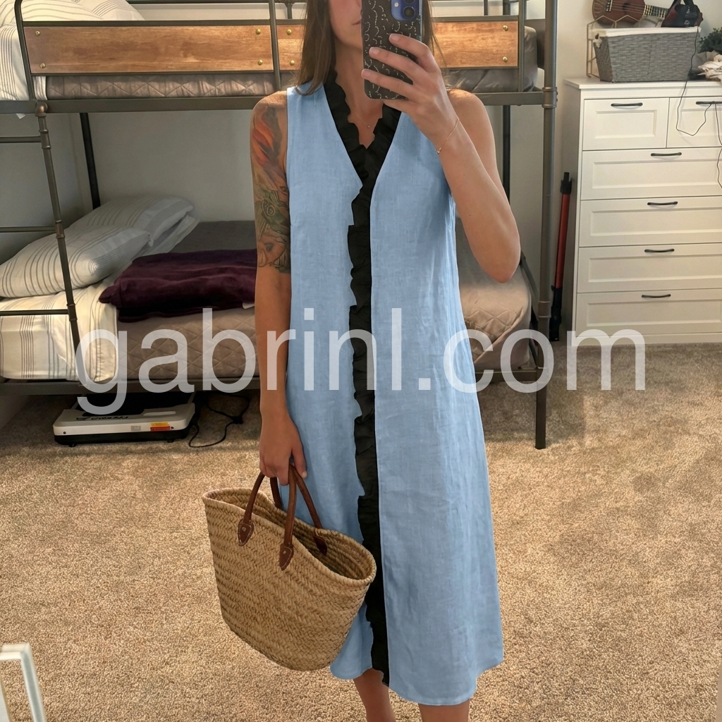Sky Blue Black Ruffle Sleeveless Midi Dress