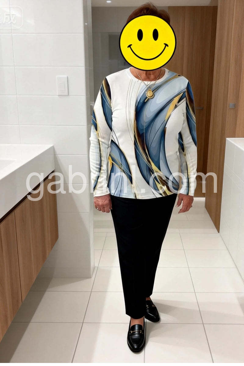 Elevate your wardrobe with this Stunning Geometric Print Round Neck Long Sleeve Top. Designed with a modern geometric pattern, it offers a sophisticated look suitable for both professional and casual settings. The round neck and long sleeves provide comfortable coverage, making it ideal for layering or wearing alone. Crafted to combine style and practicality, this top enhances your outfit with a contemporary edge while ensuring all-day comfort.
