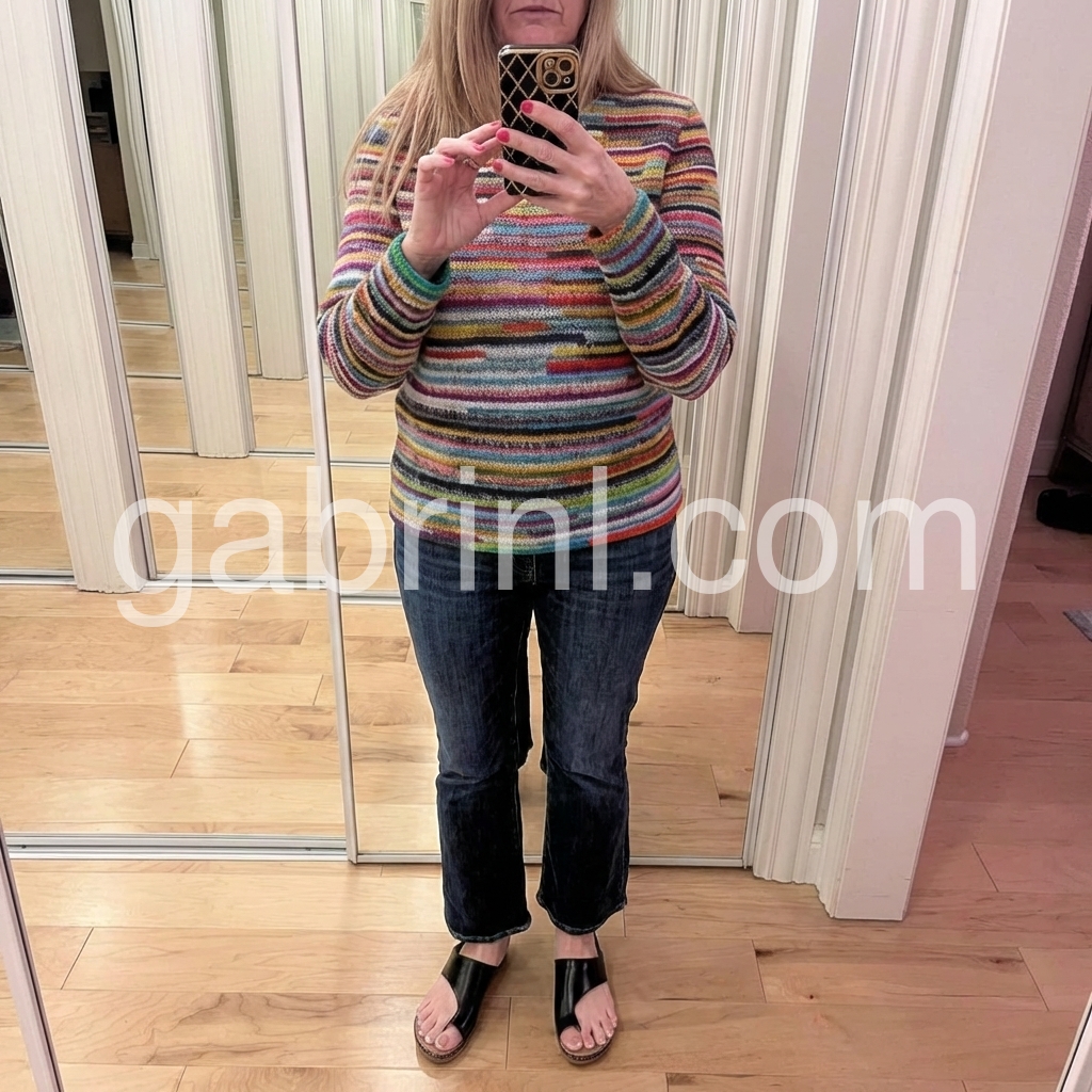 This sweater is perfect for the winter season. The unique striped pattern and long sleeves provide extra warmth and insulation to keep you comfortable. The fabric is lightweight and breathable for added comfort.